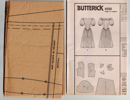 Butterick 4550 Womens Evening Dropped Waist Full Skirt Dress 1990s Vintage Sewing Pattern Size 6 - 10 UNCUT Factory Folded