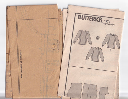 Butterick 6971 Womens Side Pleated Blouses 1980s Vintage Sewing Pattern Size 6 - 10 UNCUT Factory Folded