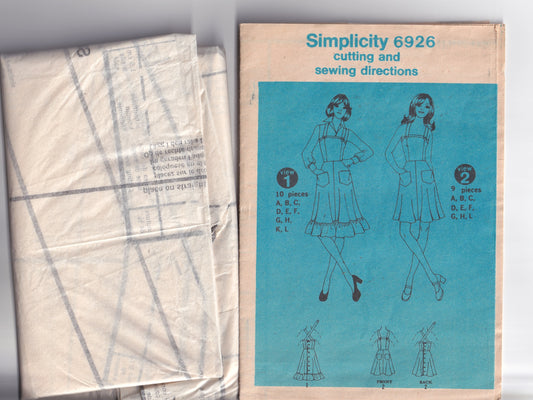 Simplicity 6926 Womens Back Buttoned Ruffled Sundress or Pinafore Dress 1970s Vintage Paper Sewing Pattern Size 12 Bust 34 Inches