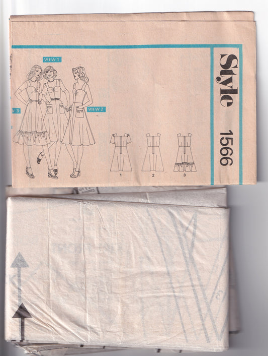 Style 1566 Womens Fit & Flared Sundress or Pinafore with Optional Hem Ruffle 1970s Vintage Paper Sewing Pattern Size 10 Bust 32.5 Inches