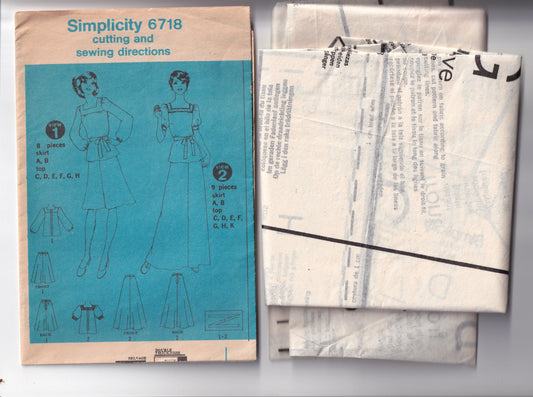 Simplicity 6718 Womens Square Yoked Pullover Casual Tops & Skirts in 2 Lengths 1970s Vintage Paper Sewing Pattern Size 12 Bust 34 inches