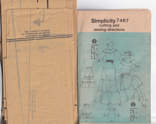 Simplicity 7467 Womens Yoked Peasant Tops & Tiered Skirts 1970s Vintage Paper Sewing Pattern LARGE Size 16 - 18