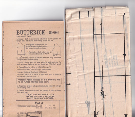 Butterick 5986 Womens Contrast Edged Long Vest Pants & Skirts 1970s Vintage Paper Sewing Pattern Size 10 Bust 32.5 inches UNCUT Factory Folded