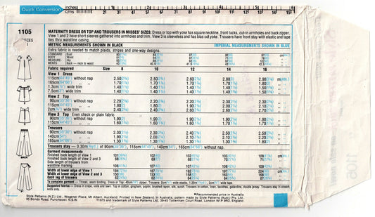 Style 1105 Womens Square Neck Maternity Dress Smock Top & Pants 1970s Vintage Sewing Pattern Size 10 UNCUT Factory Folded
