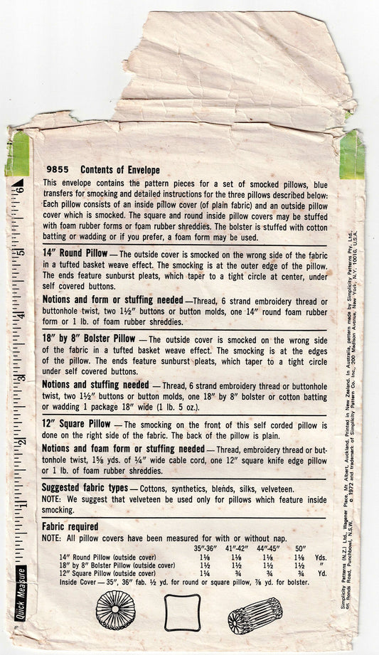 Simplicity 9855 Mid Century Home Decor Smocked Pillows 1970s Vintage Sewing Pattern