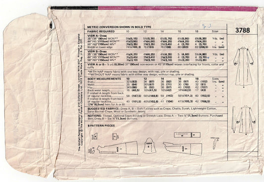 McCall's 3788 Womens Wide Collar Dress & Maxi Dress 1970s Vintage Sewing Pattern Size 18 Bust 40 Inches