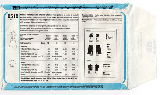 Simplicity 8518 Womens EASY Sundress & Tie Front Jacket 1970s Vintage Sewing Pattern Size 14 Bust 36 inches UNCUT Factory Folded
