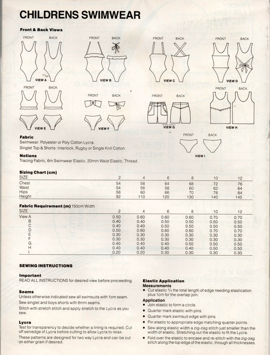Justknits 9682 Boys or Girls Swimsuit Bikini Shorts & Top 1980s Vintage Sewing Pattern Sizes 2 - 12 UNCUT Factory Folded