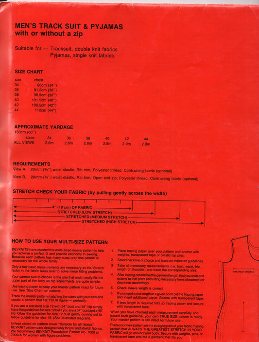 Bevknits 8008 Mens Tracksuit & Pajamas 1980s Vintage Sewing Pattern Size 34 - 44 UNCUT Factory Folded
