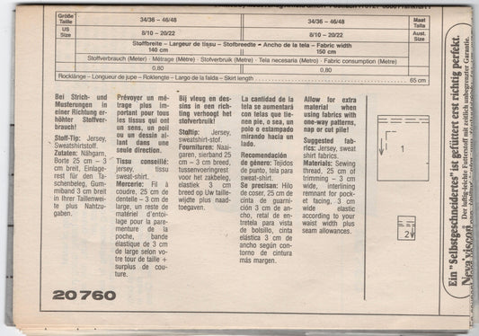 Neue Mode G 20760 Womens EASY Stretch Straight Skirt 1980s Vintage Sewing Pattern Size 10 - 22 UNCUT Factory Folded