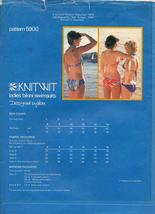 Knitwit 5900 Womens Bikinis Retro Swimwear Boob Tube Halter 1970s Vintage Sewing Pattern Sizes 6 - 16 UNCUT Factory Folded Master Pattern