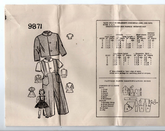 Anne Adams 9871 Toddlers Suspender Pants Skirt & Jacket 1950s Vintage Sewing Pattern Size 4 UNUSED Factory Folded