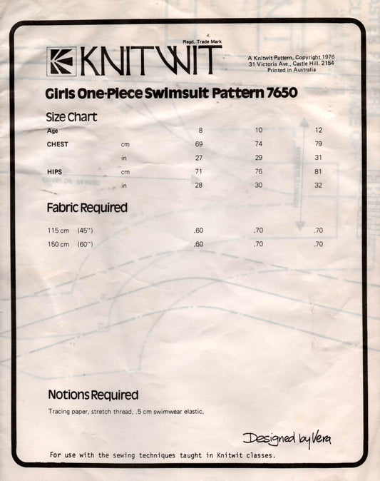 Knitwit 7650 Tween Teen Girls One Piece Swimsuits 1970s Vintage Sewing Pattern Sizes 8 - 12 UNCUT