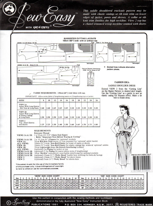 Sew Easy 510 A Womens Mens UNISEX Tracksuit T Shirt & Shorts 1990s Vintage Sewing Pattern Size 8 - 26 UNCUT Factory Folded