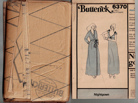 Butterick 6370 JOHN KLOSS Womens Stretch Knit Nightgown & Wrap Robe 1970s Vintage Sewing Pattern Size 12 Bust 34 Inches UNCUT Factory Folded