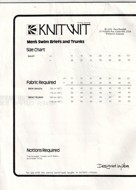 Knitwit 9600 Mens Swim Briefs & Trunks 1970s Vintage Sewing Pattern Waist 28 - 40 inches UNCUT Factory Folded