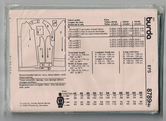 Burda 8789 Mens Classic Bath Robe 1980s Vintage Sewing Pattern Size 36 - 46 UNCUT Factory Folded