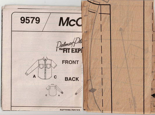 McCall's 9579 Mens Womens Palmer Pletsch UNISEX Basic Button Front Shirt 1990s Vintage Sewing Pattern Bust/Chest 38-40 Inches UNCUT Factory Folded