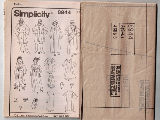 Simplicity 8944 Mens Womens UNISEX Cosplay Kimono or Star Wars Jedi Capes Out Of Print Sewing Pattern Size XS - XL UNCUT Factory Folded
