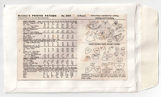 McCall's 2084 Retro Baby Walker Dolls Clothing 9 - 10 Inch Dolls Clothes 1950s Vintage Sewing Pattern