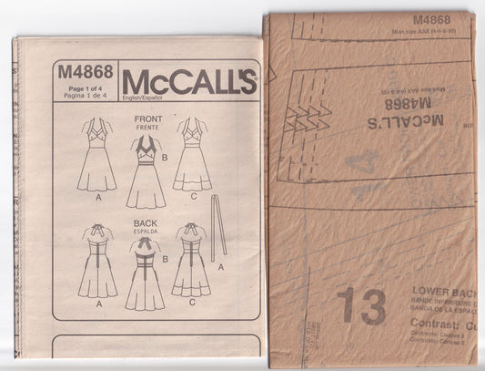 McCall's 4868 Womens Halter Sundress with Contrast Trim Out Of Print Sewing Pattern Sizes 4 - 10 UNCUT Factory Folded