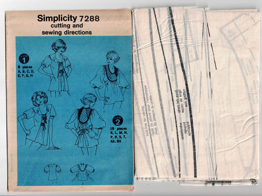 Simplicity 7288 Womens Boho Hippie Blouses 1970s Vintage Paper Sewing Pattern Size 12 Bust 34 inches UNCUT Factory Folded