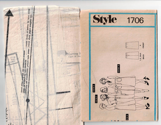 Style 1706 Womens Slim Topstitched Skirts with Pockets 1970s Vintage Paper Sewing Pattern Size 12 UNCUT Factory Folded