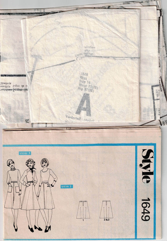 Style 1649 Womens A Line Skirts with Pockets 1970s Vintage Paper Sewing Pattern Size 14 Waist 28 Inches