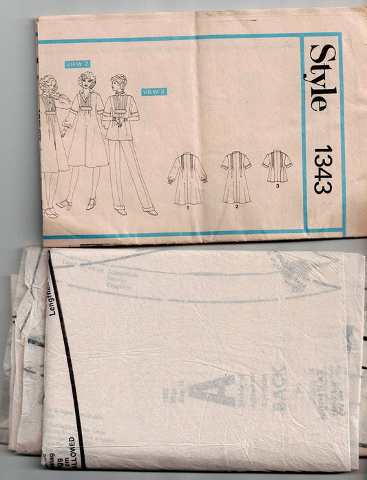 Style 1343 Womens Tucked Bodice Dress or Top 1970s Vintage Paper Sewing Pattern Size 12 Bust 34 inches