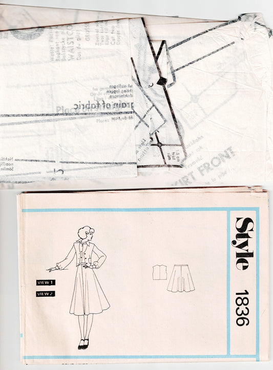 Style 1836 Womens Waistcoat & Flared Skirt 1970s Vintage Paper Sewing Pattern Size 12 Bust 34 inches