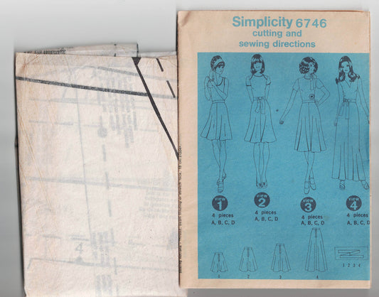 Simplicity 6746 Womens Gored Bias Cut Skirt in 4 Lengths & Tie 1970s Vintage Paper Sewing Pattern Size 12 Waist 26.5 inches