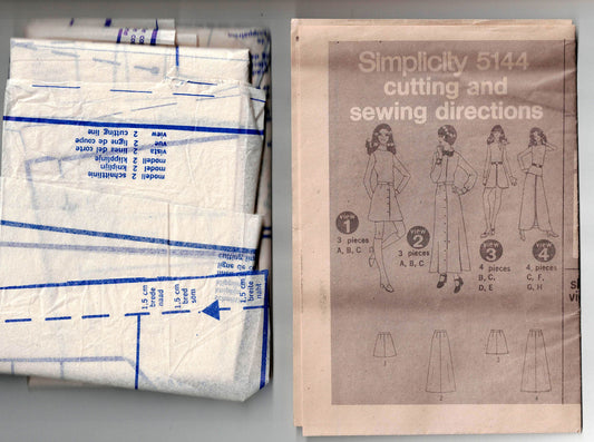 Simplicity 5144 Womens Set of A Line Skirts in 2 Lengths 1970s Vintage Paper Sewing Pattern Size 14 Waist 28 Inches