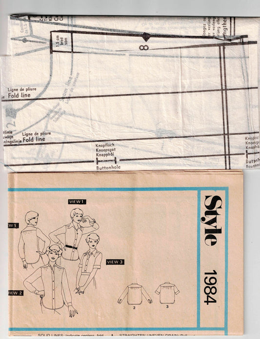 Style 1984 Womens Classic Button Front Shirts 1970s Vintage Paper Sewing Pattern Size 16 or 18 Bust 38 or 40 Inches