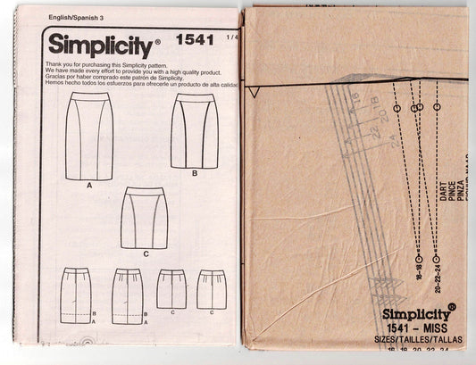 Simplicity 1541 AMAZING FIT Womens Princess Seamed Pencil Skirt Out Of Print Sewing Pattern Size 16 - 24 UNCUT Factory Folded