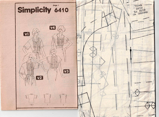 Simplicity 6410 Womens Tucked Front Shirts 1980s Vintage Sewing Pattern Size 12 Bust 34 inches UNCUT Factory Folded