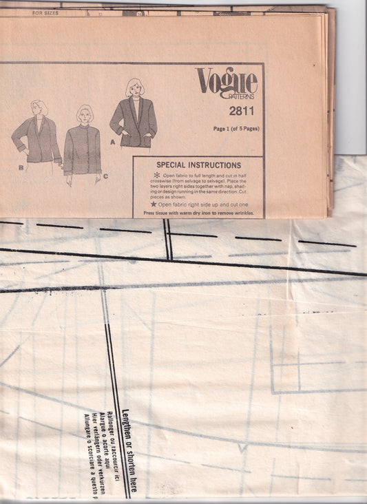 Vogue American Designer 2811 CALVIN KLEIN Womens Bomber or Blazer Jackets 1980s Vintage Sewing Pattern Size 10 Bust 32.5 Inches UNCUT Factory Folded