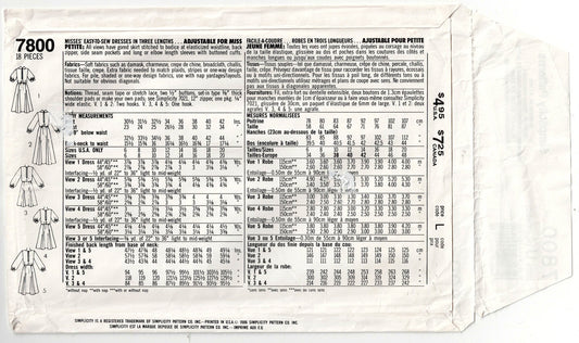 Simplicity 7800 Womens EASY Puff Sleeved Dresses 1980s Vintage Sewing Pattern Sizes 16 - 20 UNCUT Factory Folded