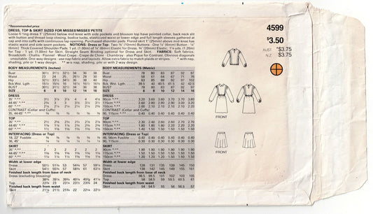 Butterick 4599 DOROTHY HAMILL Womens Shirtdress 1980s Vintage Sewing Pattern Size 10 Bust 32.5 Inches UNCUT Factory Folded