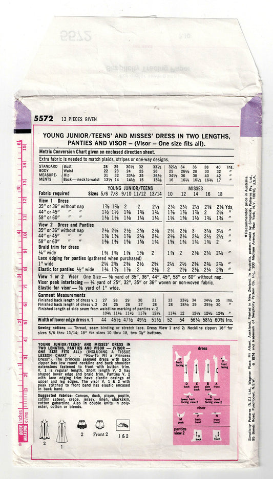 Simplicity 5572 Young Junior Teens Tennis Dress Panties & Visor 1970s Vintage Sewing Pattern Bust 33.5 inches UNCUT Factory Folded