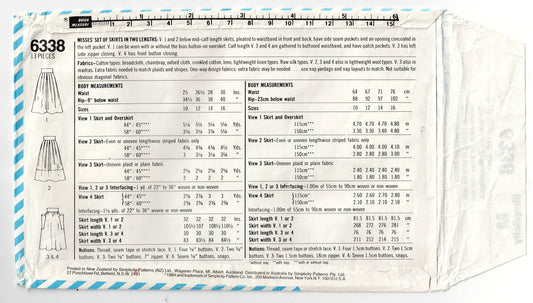 Simplicity 6338 Womens Full Gathered or Pleated Skirt 1980s Vintage Sewing Pattern Size 10 Waist 25 inches UNCUT Factory Folded