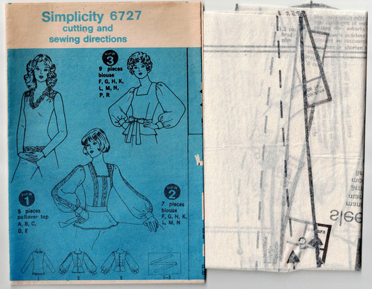 Simplicity 6727 Womens Blouses with Big Sleeves & Cuffs 1970s Vintage Sewing Pattern Size 10 Bust 32.5 inches
