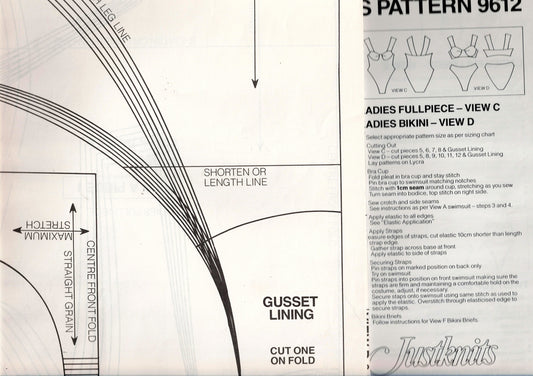 Justknits 9612 Womens Retro One Piece Swimsuits & High Cut Bikinis 1980s Vintage Sewing Pattern Sizes 8 - 18 UNCUT Factory Folded Master Pattern