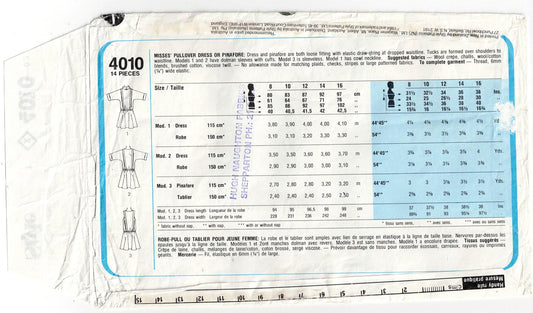 Style 4010 Womens Dropped Waist Dress or Pinafore 1980s Vintage Sewing Pattern Size 8 - 12 UNCUT Factory Folded