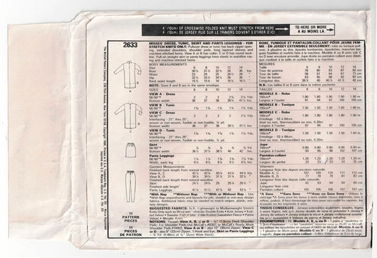 McCall's 2633 BROOKE SHIELDS Womens Dress Tunic Skirt & Stretch Leggings 1980s Vintage Sewing Pattern Size 6-8 UNCUT Factory Folded
