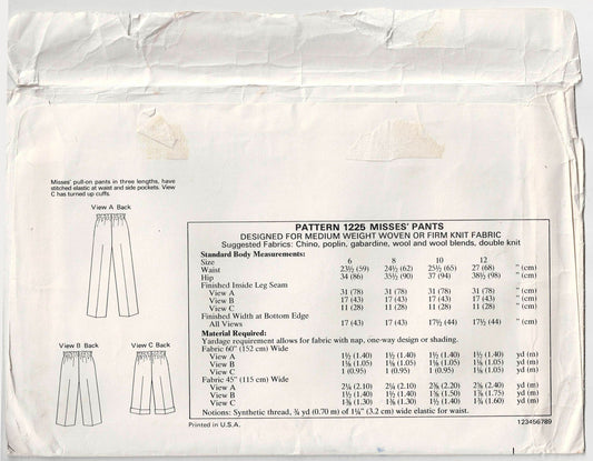 Kwik Sew 1225 Womens Straight Leg Pants & Shorts 1980s Vintage Sewing Pattern Size Waist 23 - 29 Inches UNCUT Factory Folded