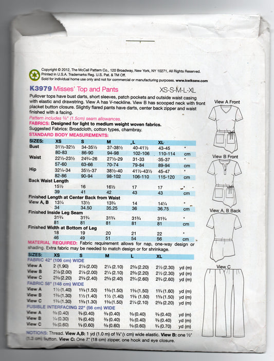 Kwik Sew 3979 Womens Hospital Medical Nursing Scrubs Out Of Print Sewing Pattern Size XS - XL UNCUT Factory Folded