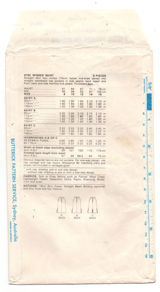 Butterick 6792 Womens Straight Skirts 1980s Vintage Sewing Pattern Size 12 UNCUT Factory Folded