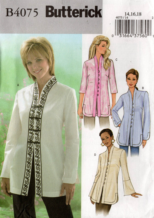 Butterick B4075 Womens Pullover Caftan Style Tunic Tops Out Of Print Sewing Pattern Size 8 - 12 UNCUT Factory Folded