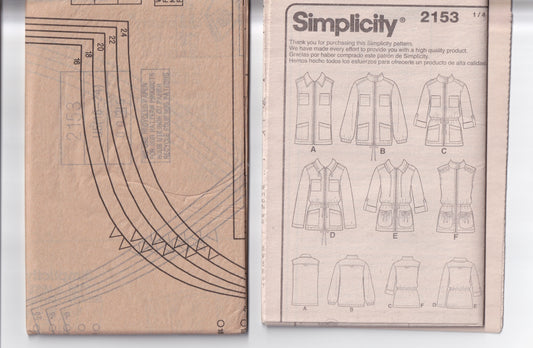 Simplicity 2153 Womens Anorak or Casual Vest with Pockets Out Of Print Sewing Pattern Size 16 - 24 UNCUT Factory Folded
