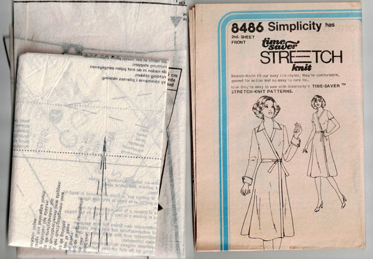 Simplicity 8486 Womens Half Sized Stretch Knit Wrap Dress with Optional Wide Collar 1970s Vintage Sewing Pattern Bust 43 Inches